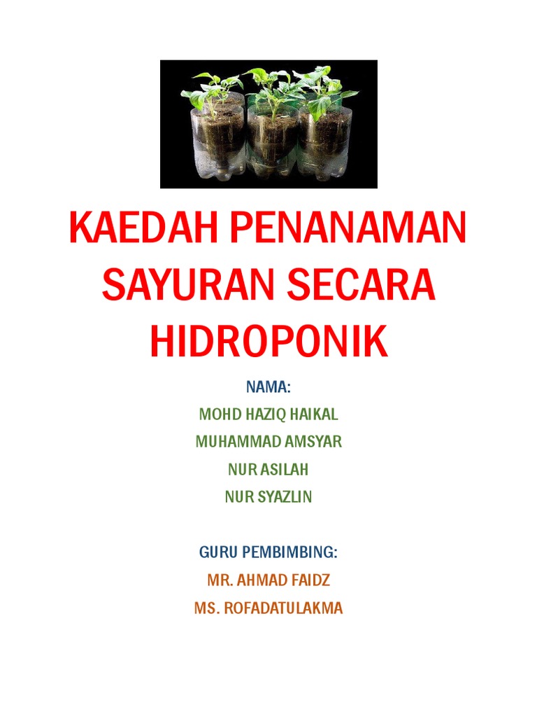 Kaedah Penanaman Sayuran Secara Hidroponik Pdf
